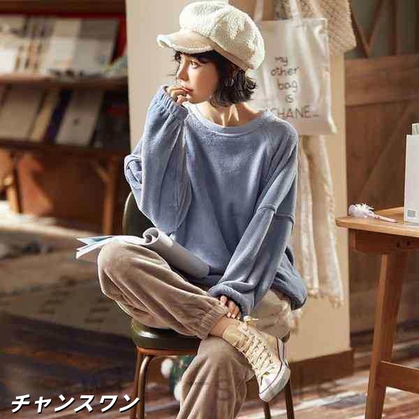 パジャマルームウェアレディース上下セット部屋着もこもこかわいい暖かいふわふわ厚手ゆったり可愛い長ズボンエメフィール冬長袖