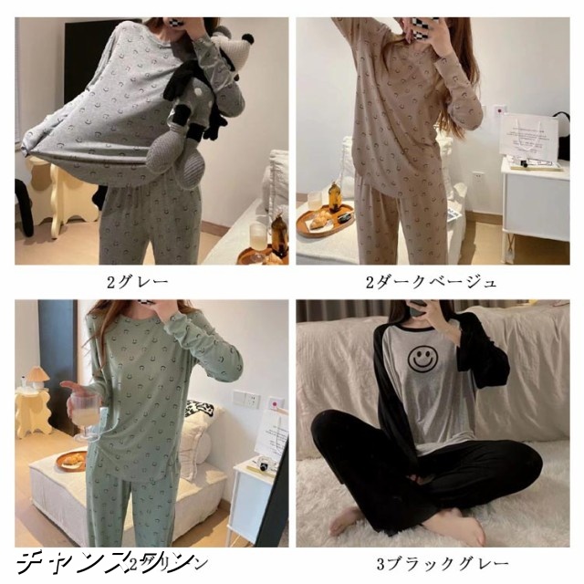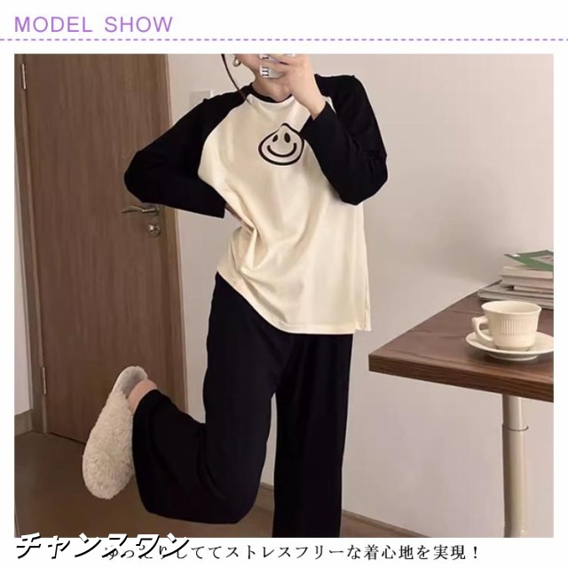 ルームウェア レディース パジャマ 長袖 カットソー 長ズボン 上下セット セットアップ 薄手 春 夏 秋 冬 部屋着 柔らかい 肌にやさしい 快適 おしゃれ ゆったり 寝間着 ナイトウエア 大きいサイズ リラックス 大人可愛い 送料無料 M-2XL