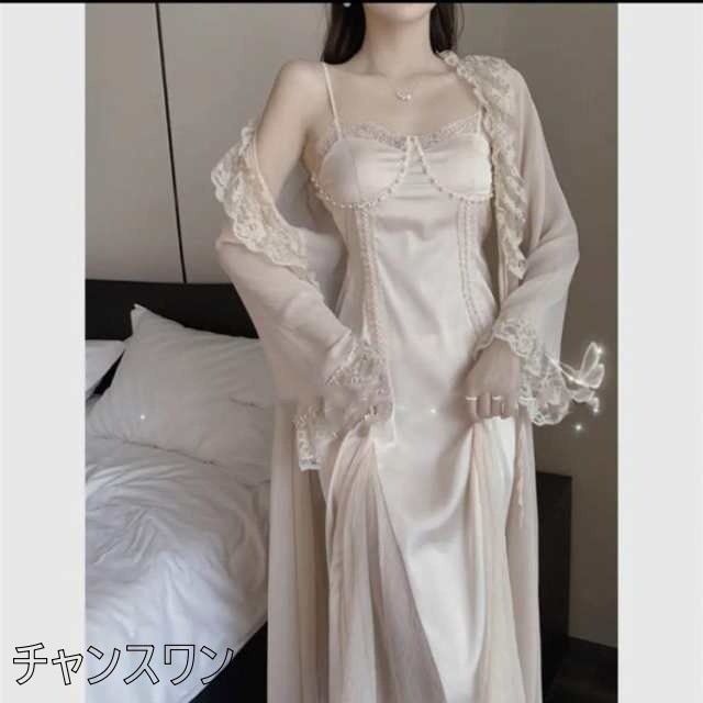 ネグリジェロングスリップ下着サテンパジャマスリップランジェリーナイトウェアネグリジェシルクドレス ホワイト 調整可