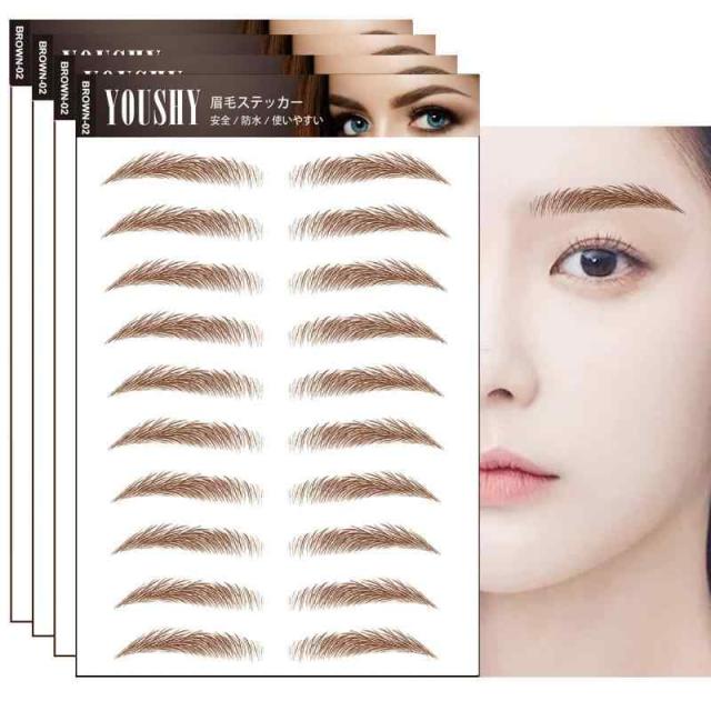 YOUSHY つけ眉毛タトゥーシール 眉 眉毛 アートメーク メイクシール 眉毛 ステッカー【40ペア】たとぅー 4d6dナチュラルまゆげ 貼る眉毛 アイブロウ 消えない 防水 持続的落ちな眉墨 化粧品シール (Brown-02)