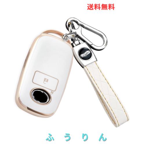 ◆商品名:キーケース適合トヨタ ライズ ダイハツ ロッキー 新型タフト キー カバー ルーミー キーホルダー (2ボタン, ホワイト)
