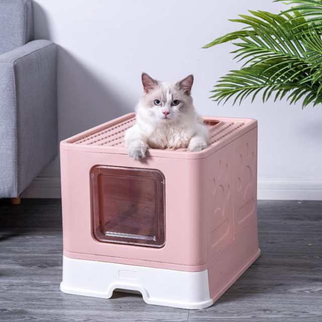 ペット 猫 ペット用品 猫トイレ ねこトイレ 折り畳み ペット 猫 ペット用品 猫トイレ ねこトイレ 折り畳み 収納スペース 引き出し式 掃除便利 しっかり プライベート 上から 3色展開 飛び散り防止 散らかりにくい 砂落とし 蓋付き 扉付き 上から