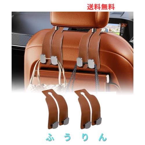 Mairearn ヘッドレスト フック 車 荷物かけ シートフック 車 荷物かけ 転倒防止 亜鉛合金製 頑丈 高級レザー シート前面/後面対応 カバン