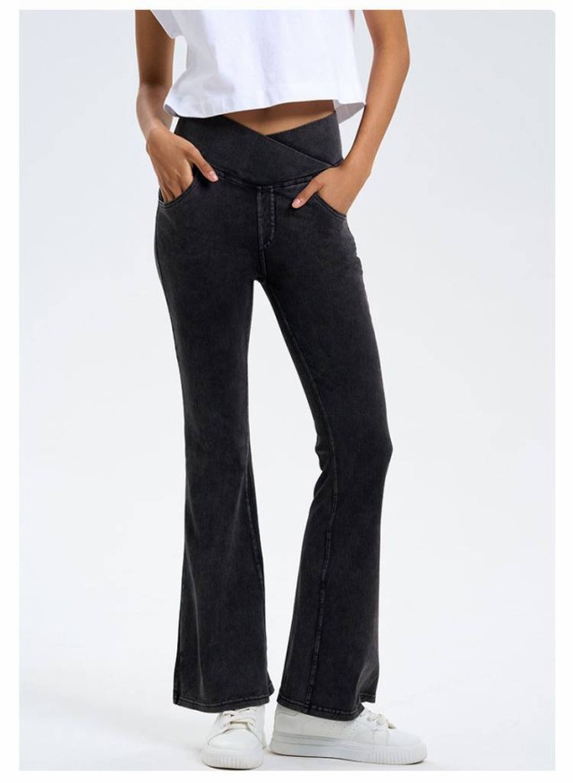 フィットネス ジーンズ ヨガパンツ レディース フレアデニムパンツ クロスウエスト ロング パンツ ストレッチ スポーツパンツ ヨガウエア クロスウエスト 普段履き ボトムス 伸縮性