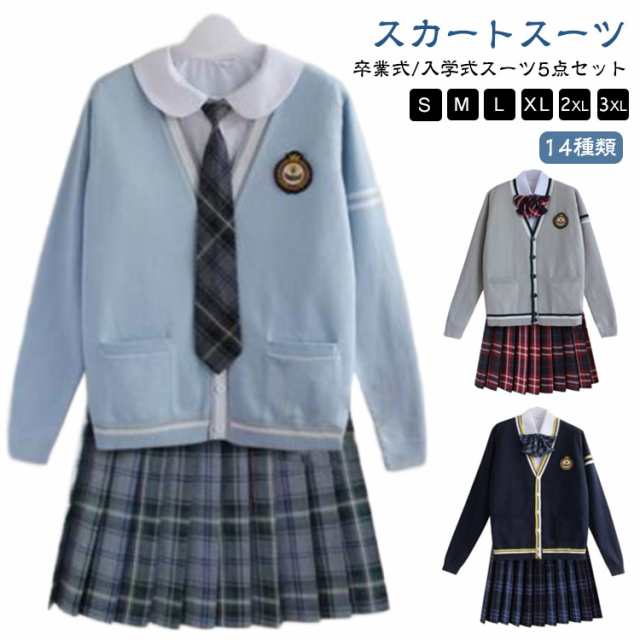 セットアップ 学生 入学式スーツ 制服 プリーツスカート コスプレ衣装 フォーマルスーツ 高校生 卒業式スーツ コスプレ 【5点セット】 スーツ 上下セット セーター 入学式 卒業式 女の子 卒業式 キッズ ジュニア スカートスーツ 発表会 【5点セット】 スーツ ニット