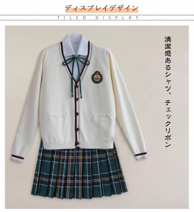 | サイズについての説明 | 【商品説明】 ◆セット内容:セーター+長袖シャツ+バッジ+スカート+リボン ※上記サイズは平置き実寸になります。 サイズ表の実寸法は商品によって1-3cm程度の誤差がある場合がございます。(単位:cm) |