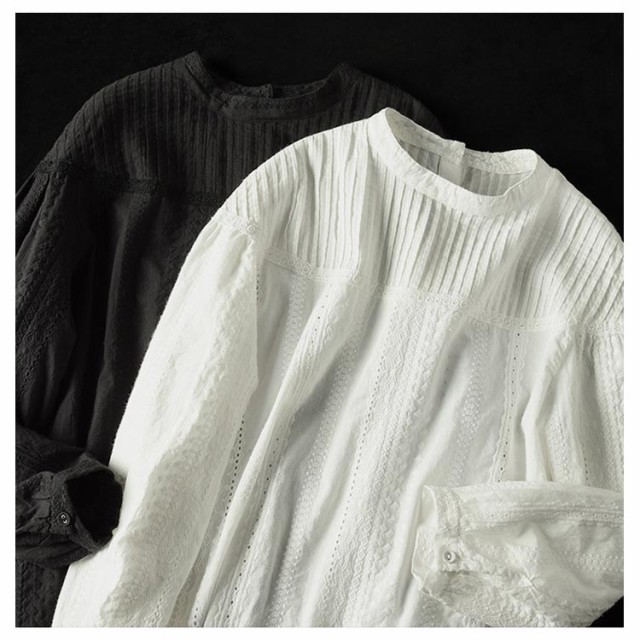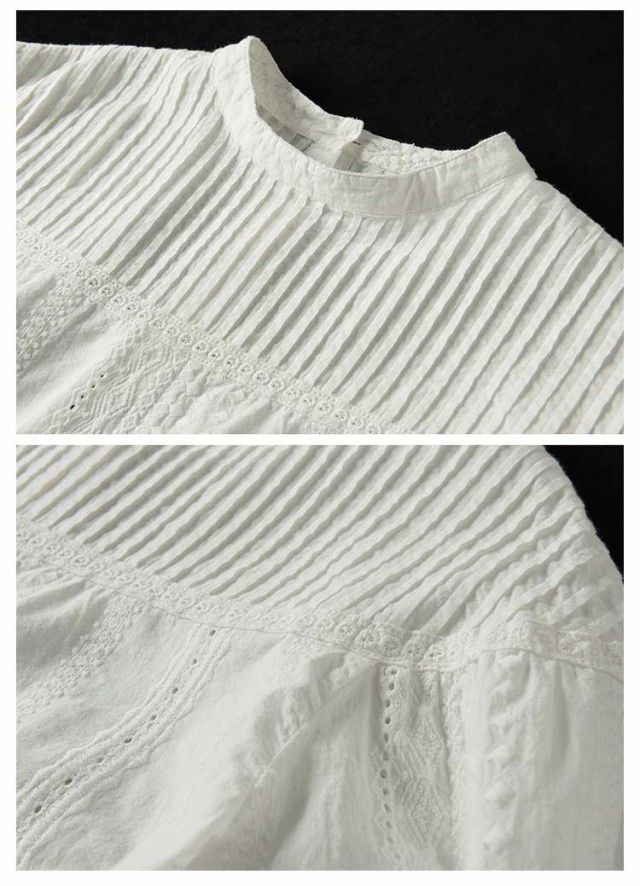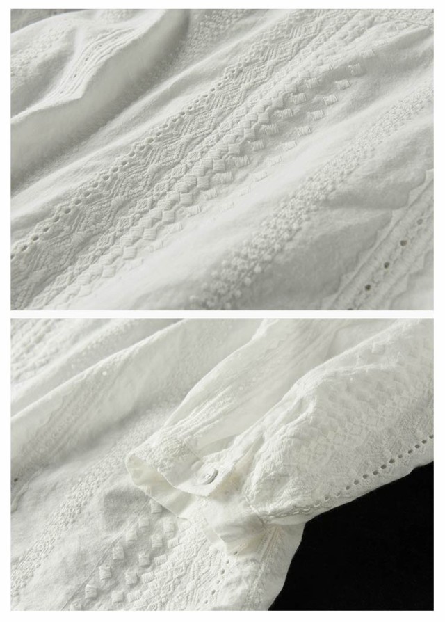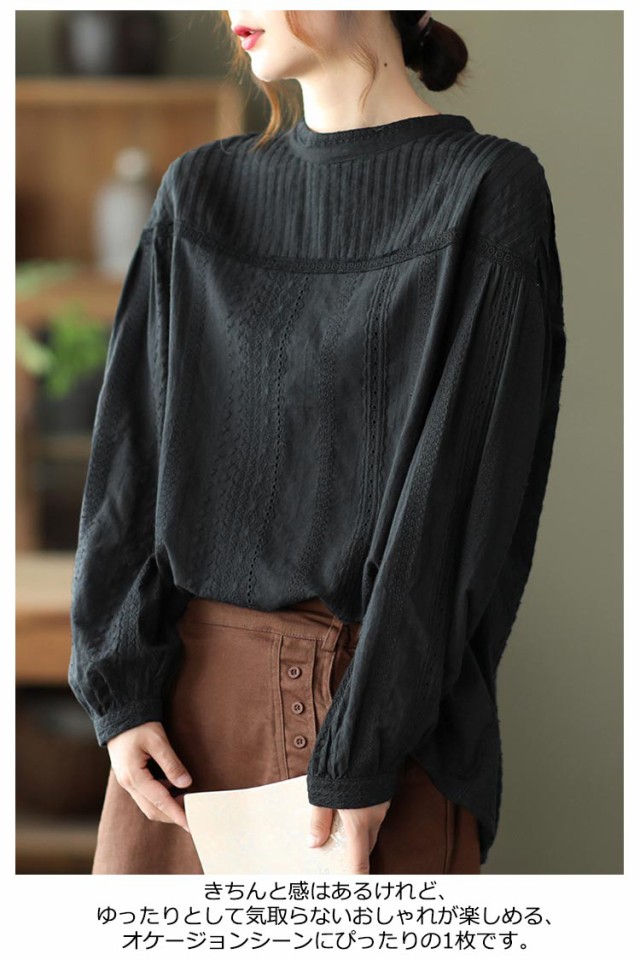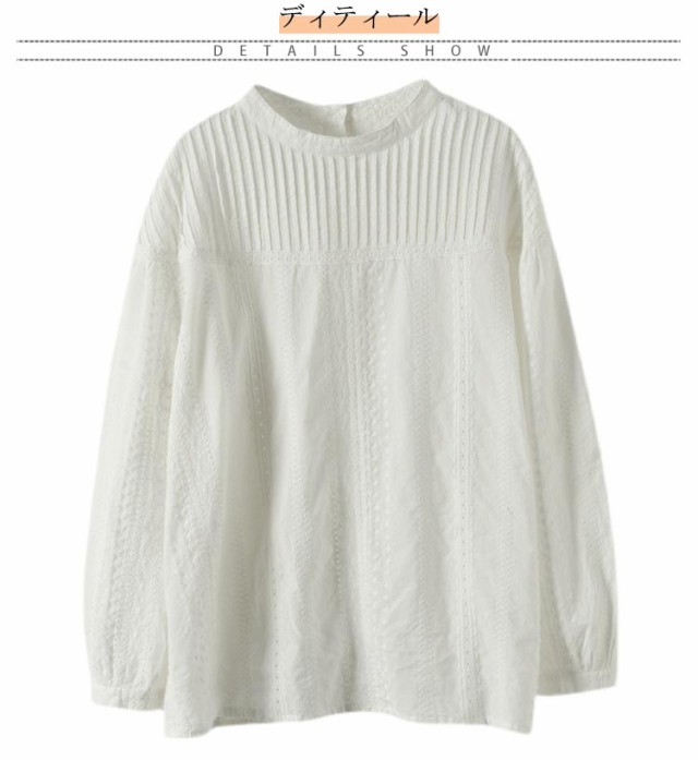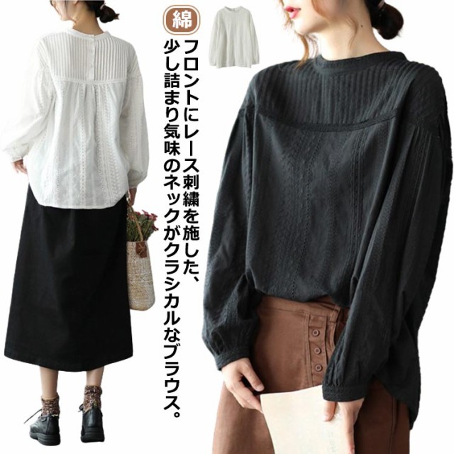 トップス ブラウス ブラウス 60代 刺繍 カットワークレース フラワー 刺繍 レディース 花 長袖 スタンドカラー パフスリーブ レース コットン 綿 ふんわり 通勤 チュニック 柔らか オフィス 上品 可愛い きれいめ 1枚で決まる 20代 30代 40代 50代 シャツ
