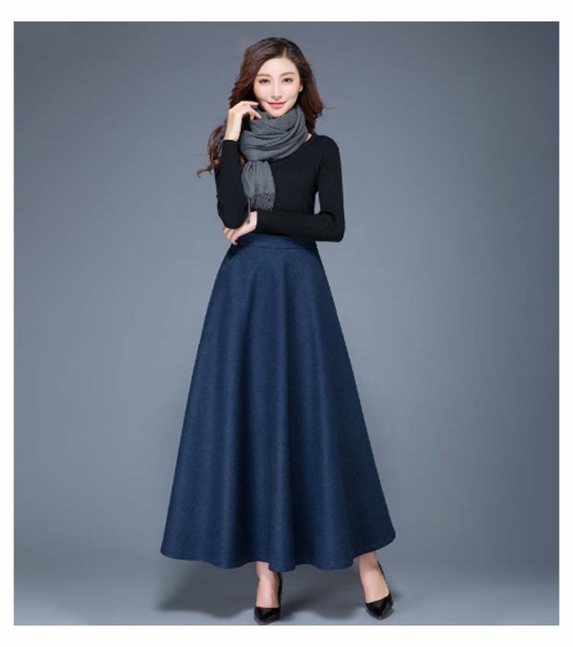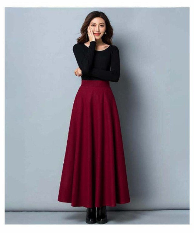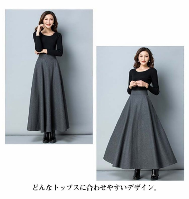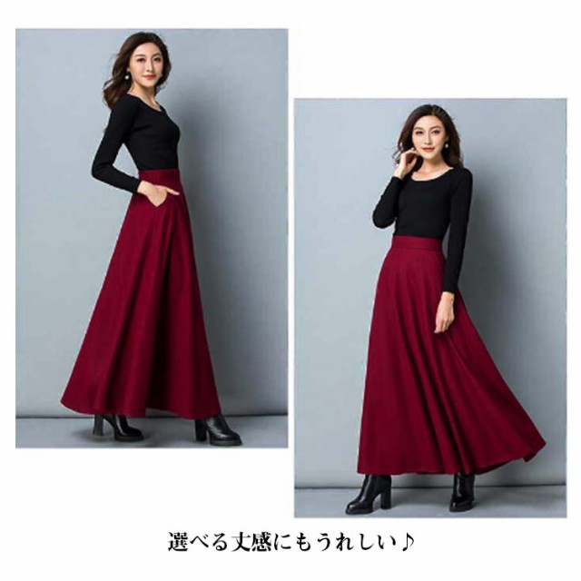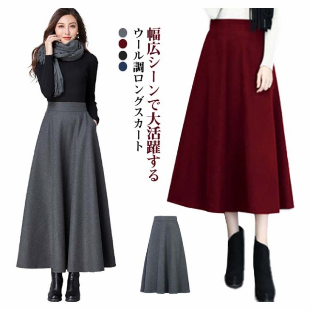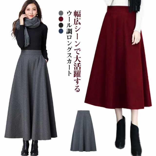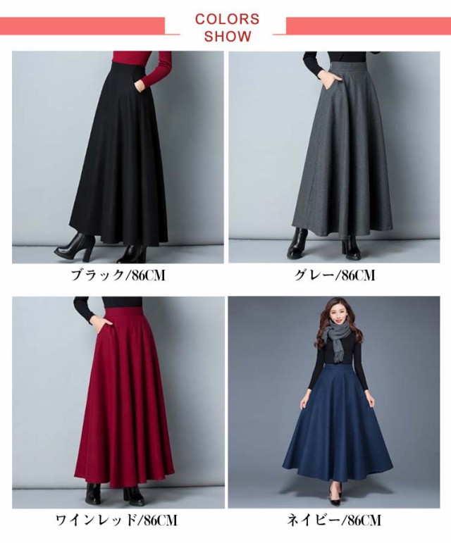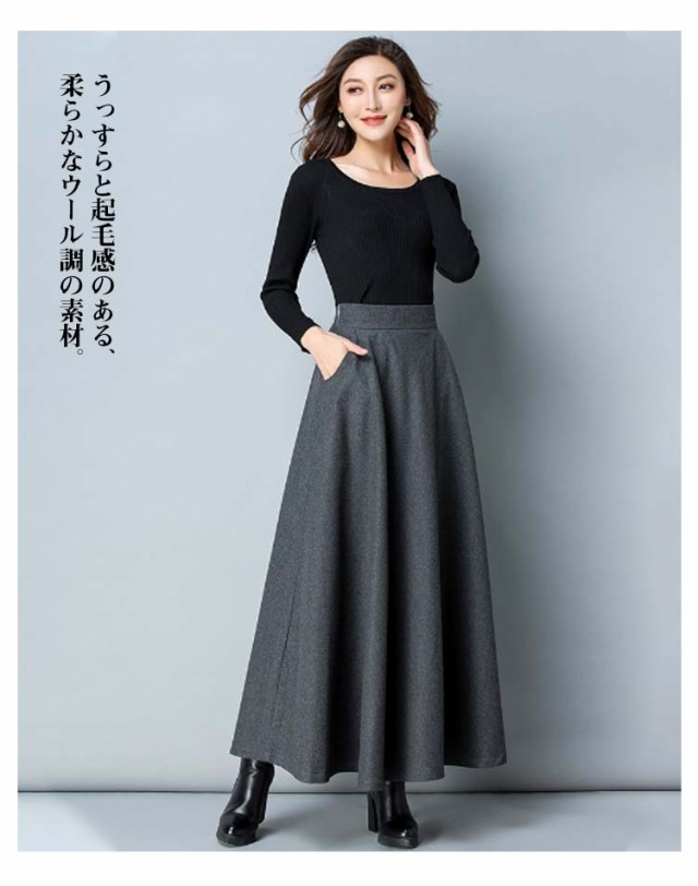 ウール調 無地 ロング丈 着?せ 86CM 秋冬 ハイウエスト ウエスト 大きいサイズ フレアスカート 76CM フレアスカート 春 マキシスカート 冬 スカート 大人 女性 ロングスカート Aライン ポケット付き 体型カバー 着痩せ きれいめ スカート 通勤