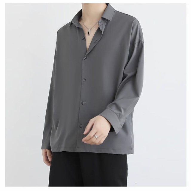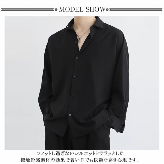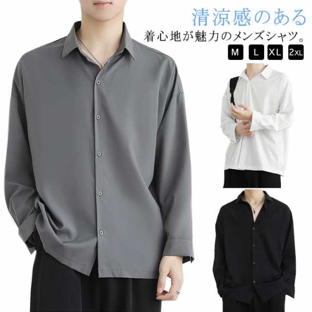 ひんやり 長袖 接触冷感 ワイシャツ カジュアルシャツ ビジネスシャツ 黒 夏 ゆったり メンズ オープンカラー アイスシルクシャツ 涼しい 無地 通勤 白 ホワイト ブラック 大きいサイズ おしゃれ シャツ