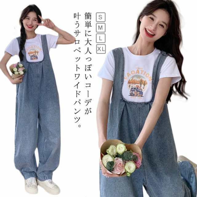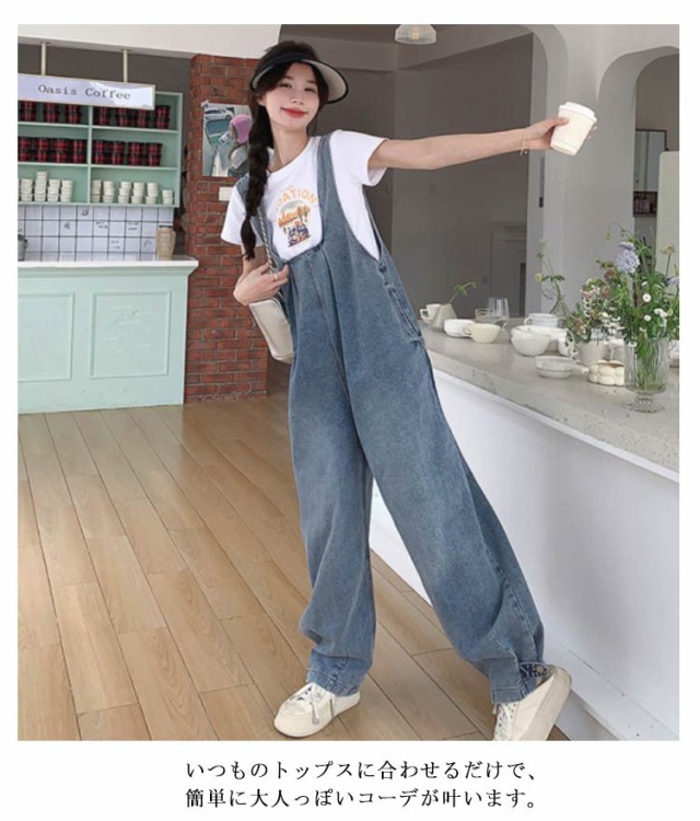 デニム 高見え ワイドパンツ サロペット オーバーオール レディース ワイド オールインワン レイヤード ジーンズ ガウチョ ボトムス デニム サスペンダー ワイド ワイドパンツ ボトムス つなぎ 重ね着 大きいサイズ