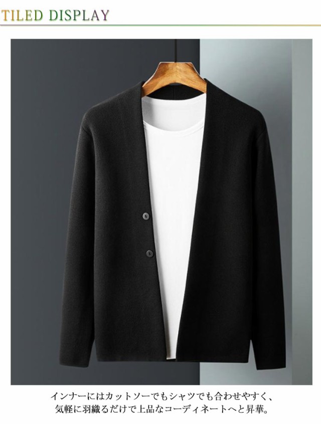 | S-4XLサイズ!のVネックニットカーディガン。 しっかりして手触りもよいニット素材なので着心地もバッチリ♪ インナーにはカットソーでもシャツでも合わせやすく、気軽に羽織るだけで上品なコーディネートへと昇華。 オフィスの冷暖房対策、通勤・通学などシンプルだからこそ使い勝手の良いitemです | |