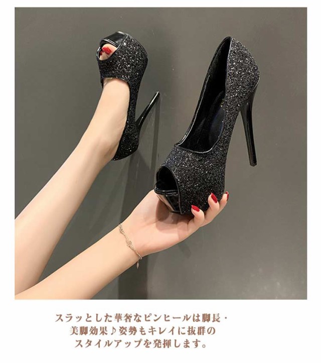 前厚 キャバパンプス ストーム厚底 オープントゥ ハイヒール シューズ キラキラ 靴 パンプス パンプス パーティーパンプス ピンヒール 痛くない キャバ嬢 美脚 ブライダルシューズ パンプス 発表会 演奏会 歩きやすい 通勤 パーティー シューズ