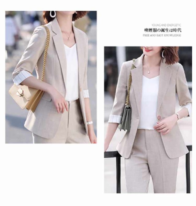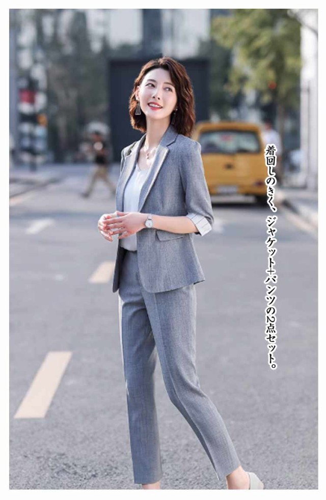 秋 2点セット スーツ パンツスーツ フォーマルスーツ 夏 レディース 7分袖 セットアップ テーラードジャケット パンツスーツ リクルートスーツ ビジネス ビジネススーツ 制服 セレモニースーツ カジュアル 通勤 上品 面接 オフィス 入学式 卒業式 結婚式 卒園式