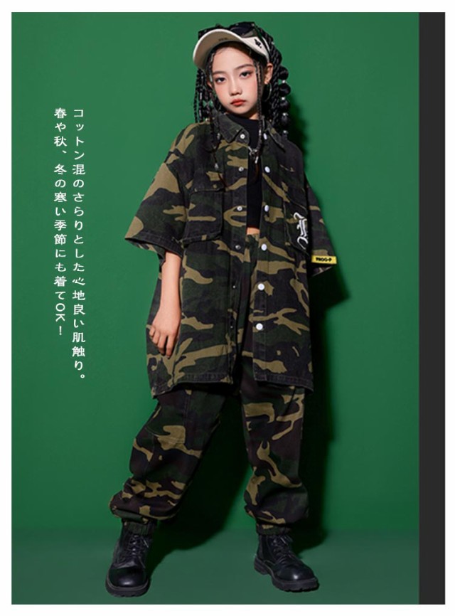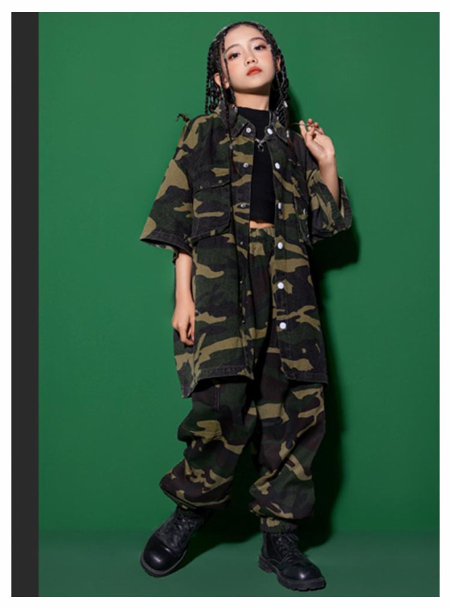 迷彩セット 迷彩 セットアップ 女の子 トップス 柄 jazz ダンス衣装 衣装 パンツキッズ 男の子 ダンス シャツ hiphop 迷彩セット かっこいい 短パン ダンスウェア B系 ヒップホップ ステージ衣装 ガールズ K-POP ジャズダンス 発表会 演出服