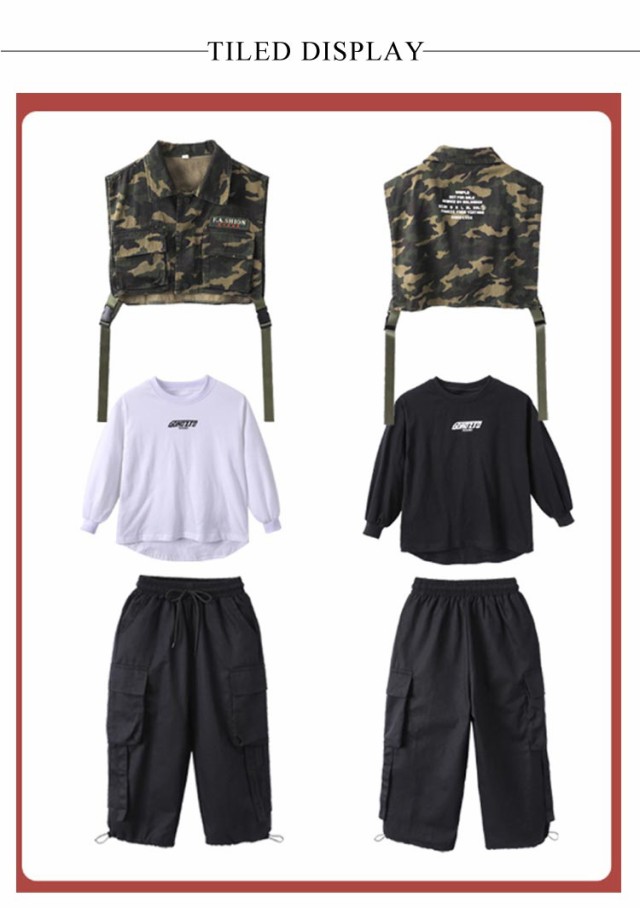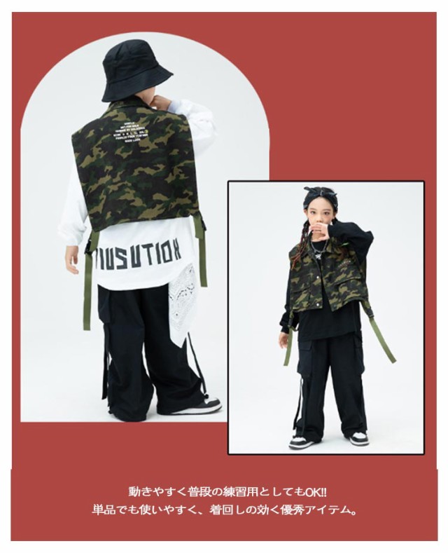| 迷彩 セットアップ 3点セット 110-180cm ダンス衣装におすすめ。カッコよく演出してくれます。 HIPHOP 超個性ダンス衣装 舞台ファッション ダンスコスチューム動きやすく履き心地がGOOD! コットン混のさらりとした心地良い肌触り。春や秋、冬の寒い季節にも着てOK! 動きやすく普段の練習用としてもOK!!♪ 単品でも使いやすく、着回しの効く優秀アイテム。 | |
