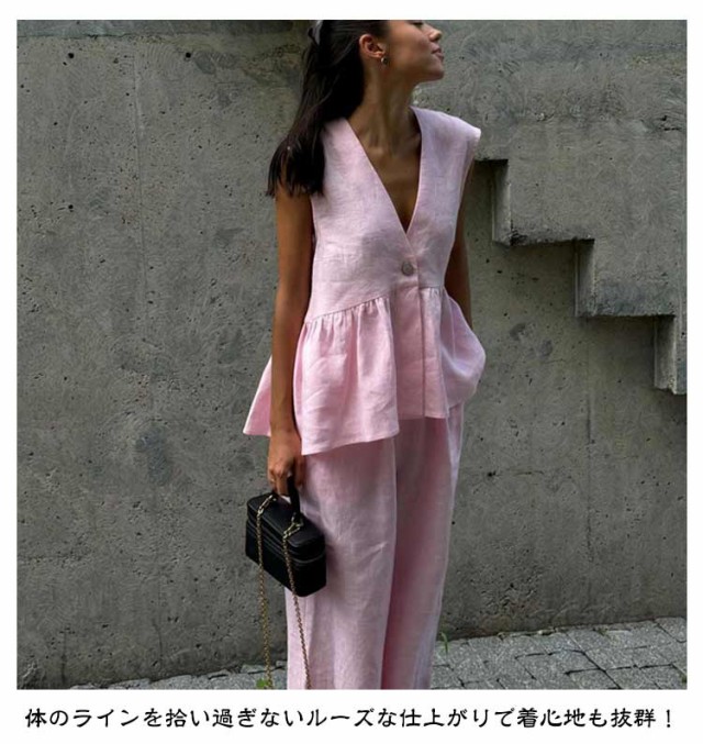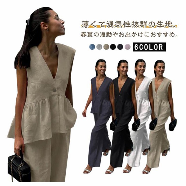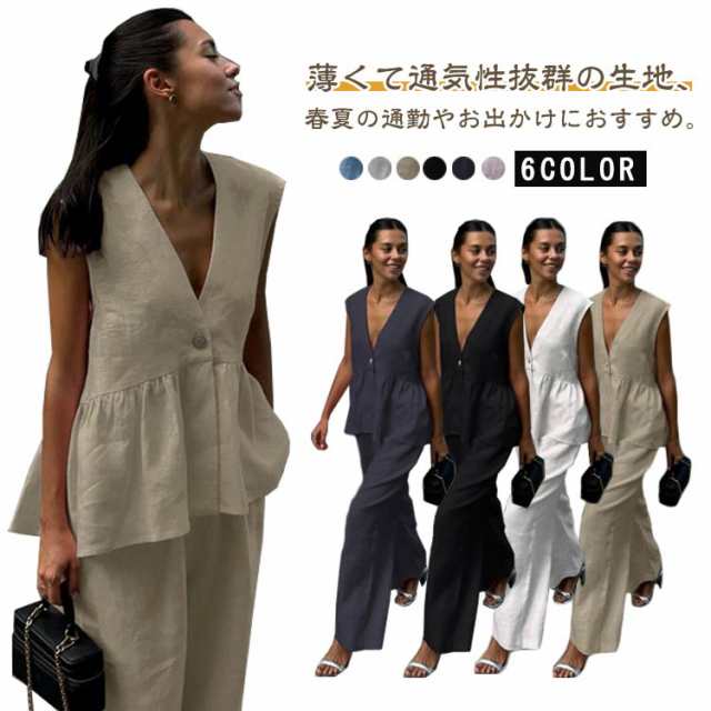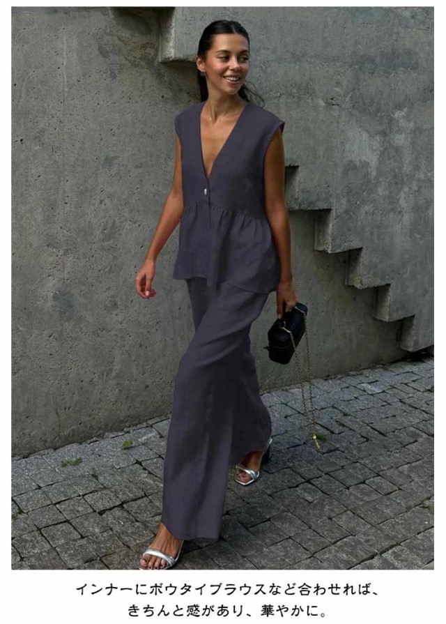 ノースリーブ セットアップ セクシー 会社 スーツ セットアップ レディース ペプラム ジレベスト 上下セット パンツスーツ 深Vネック フレアジレベスト 体型カバー 仕事 OL 40代 結婚式 入学式 卒業式