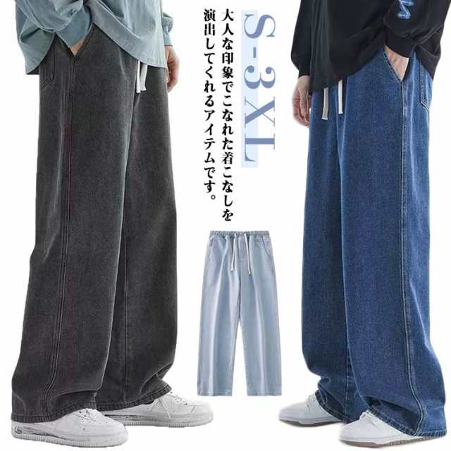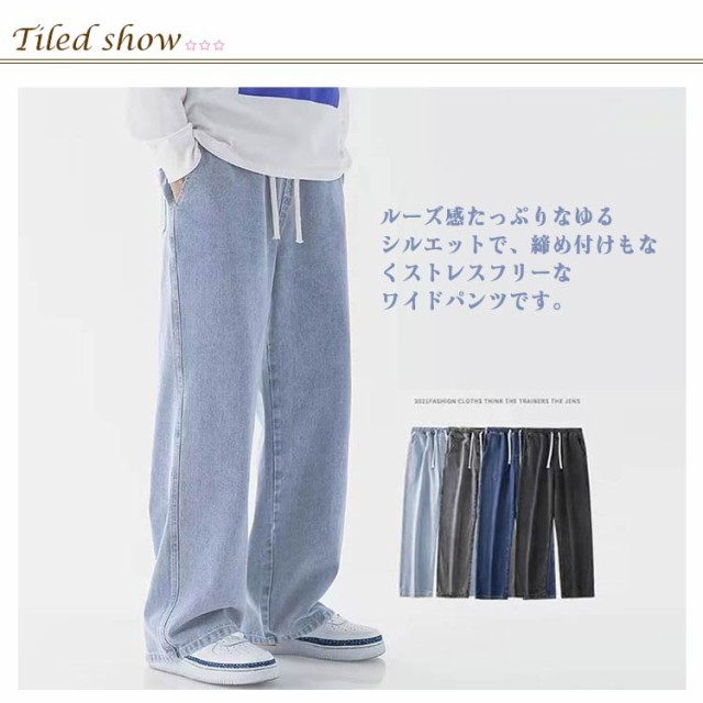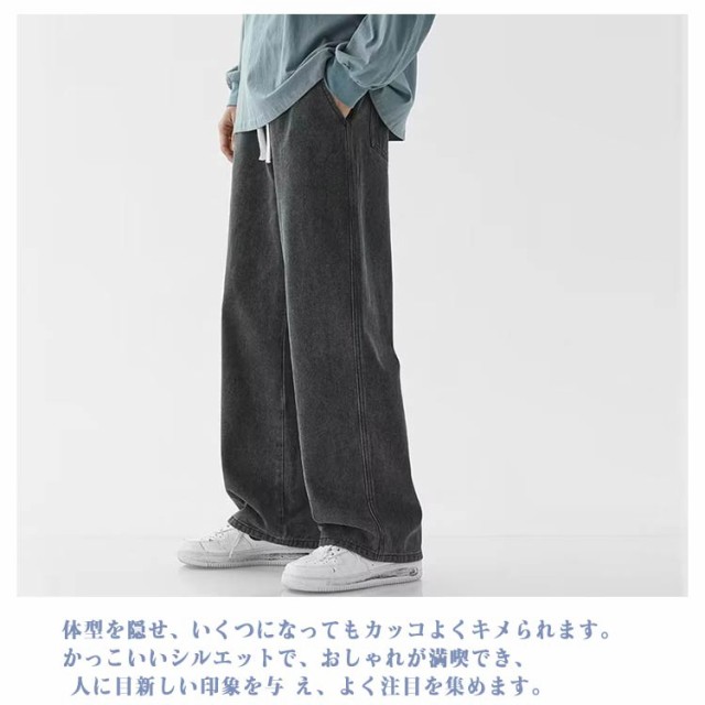 メンズ デニムパンツ イージーパンツ ストレートパンツ ワイド 夏 脚長効果 カジュアル ワイドパンツ ジーパン 春 デニムパンツ 秋 アメカジ レトロ風 ボトムス おしゃれ ロング丈 体型カバー リラックスパンツ ロングパンツ