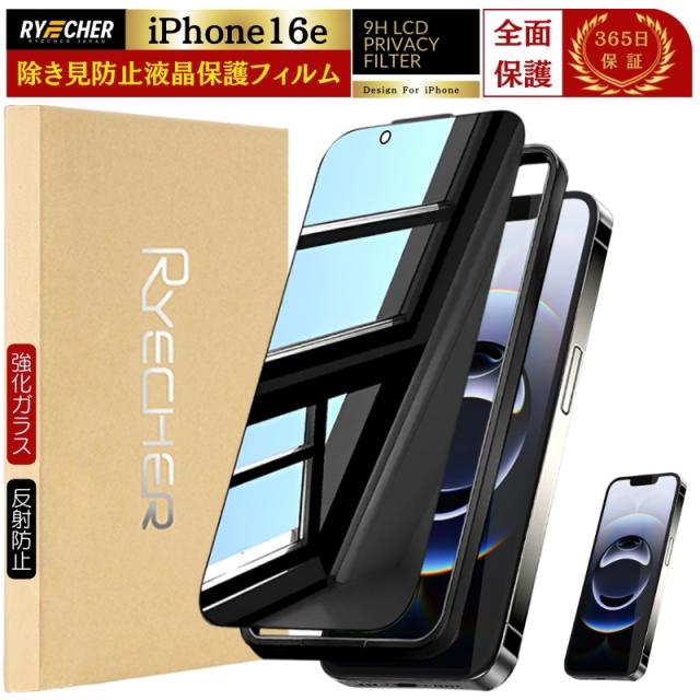 覗き見防止 iPhone 16e ガラスフィルム 覗き 防止 強化ガラス iPhone 16e 保護フィルム 強化 除き見防止フィルム iPhone 16e フィルム 覗き防止 強化ガラス 反射防止 のぞき見 iPhone 16e プライバシー保護 アイフォン16e RYECHER