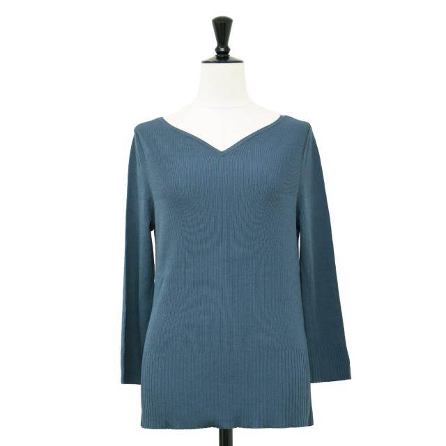 theory luxe セオリーリュクス ニット ブルー サイズ:38(M) / リブ プルオーバー ニット / MULTI.RIB OTTA Vネック 長袖 9分丈 レーヨン / トップス セーター【レディース】【中古】【K4467】