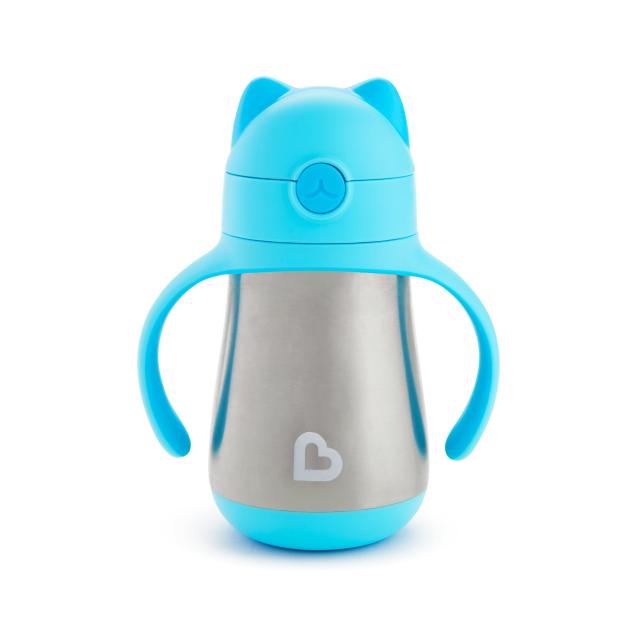 munchkin マンチキン クールキャットストローマグ・ステンレス ブルー 保冷 食洗器OK 270ml 逆流防止弁つき FDMU43474002P