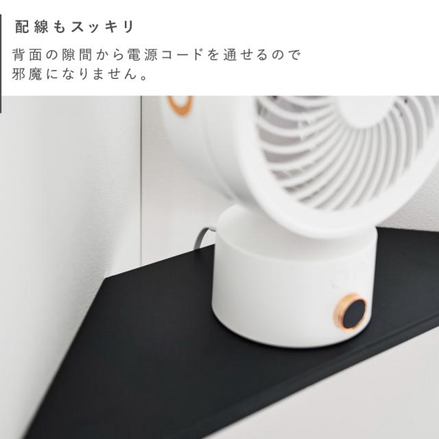 電源コードは背面の隙間から通すことができ、サーキュレーターをお好みの高さに設置することで、空気を循環させることができ電気代の節約にもなります。壁の穴が目立ちにくい石こうボードピンで簡単取り付け。木ネジでも取り付け可能。