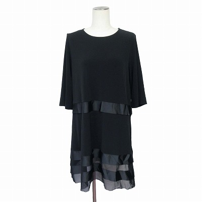 【中古】ハッシュパピー Hush Puppies チュニック 七分袖 裾メッシュ M 黒 レディース