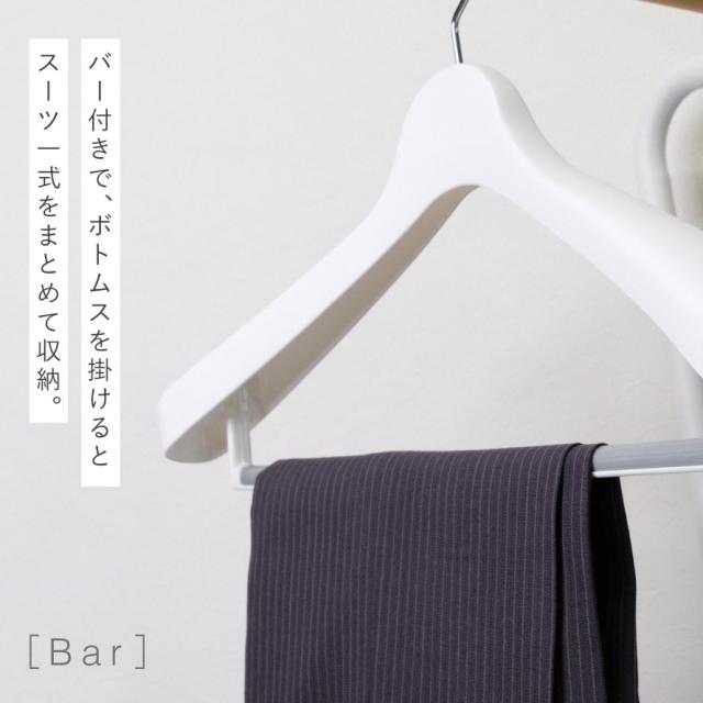 バー付きなので、ボトムスを掛けると、スーツ一式をまとめて収納することができます。