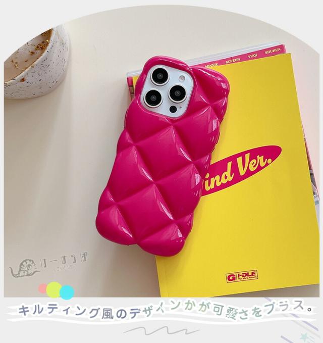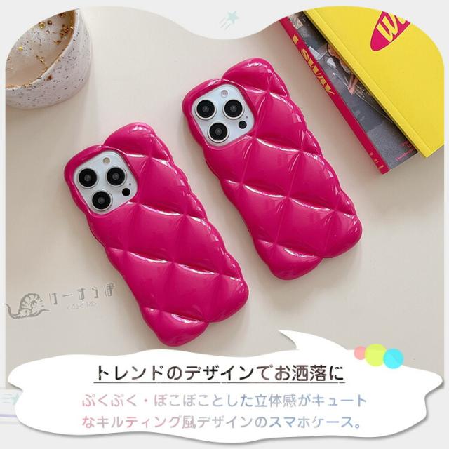 ぷくぷく・ぽこぽことした立体感がキュートなキルティング風デザインのスマホケース。
