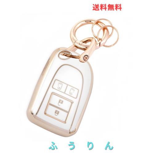 [HOYZE] ハイエースキーケース レジアスエースキーカバー 可愛い スマートキーケース キーホルダー キーシェル(ゴールドホワイト)