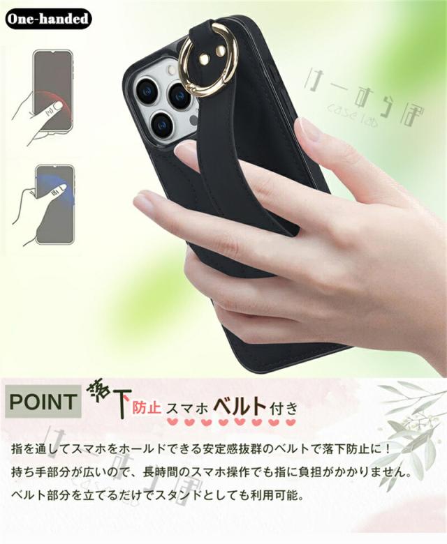 便利なリングとベルト付きで、大画面になったスマホでも片手で楽に操作ができます