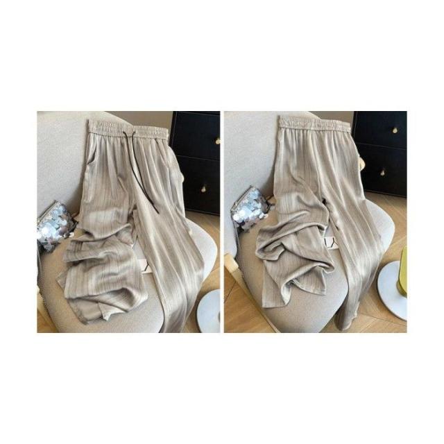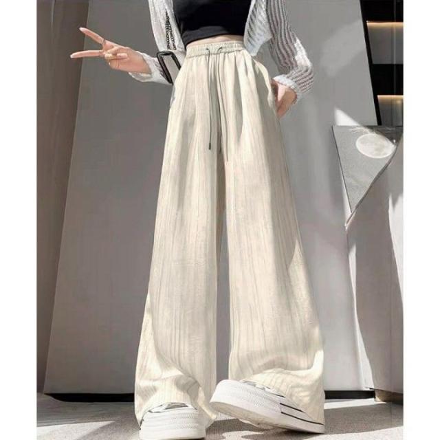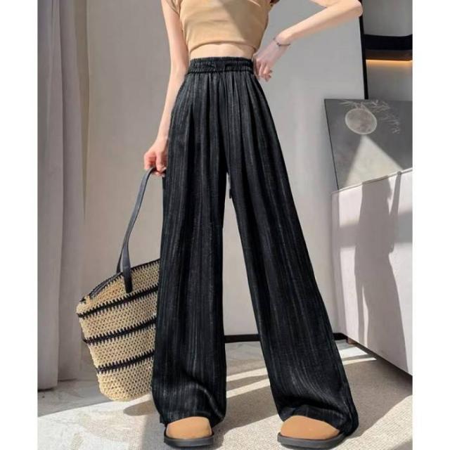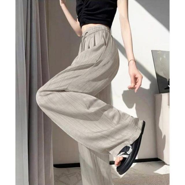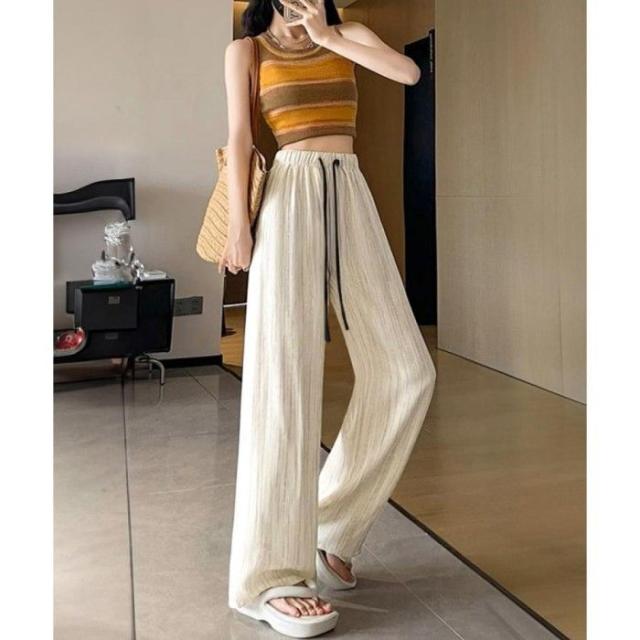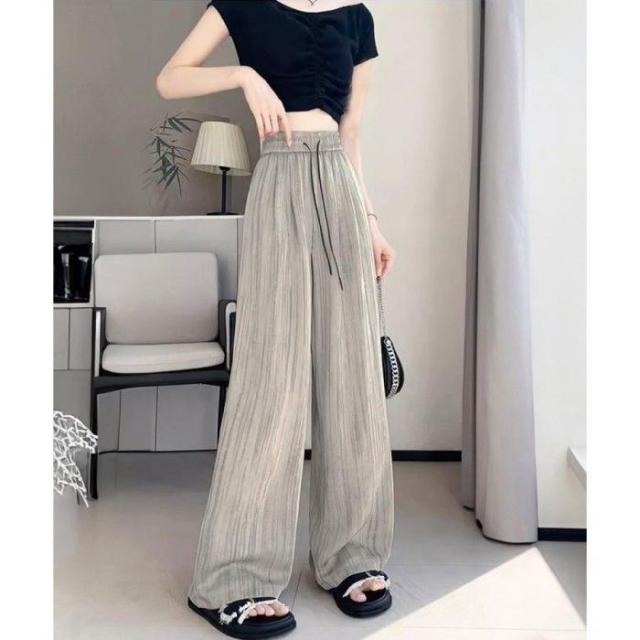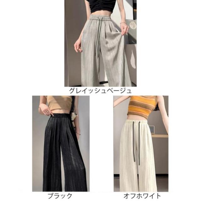 レディース ハイウエスト ストレートパンツ ゆったりロングパンツ 涼しいサマーパンツ ウエストゴム 楽ちんイージーパンツ