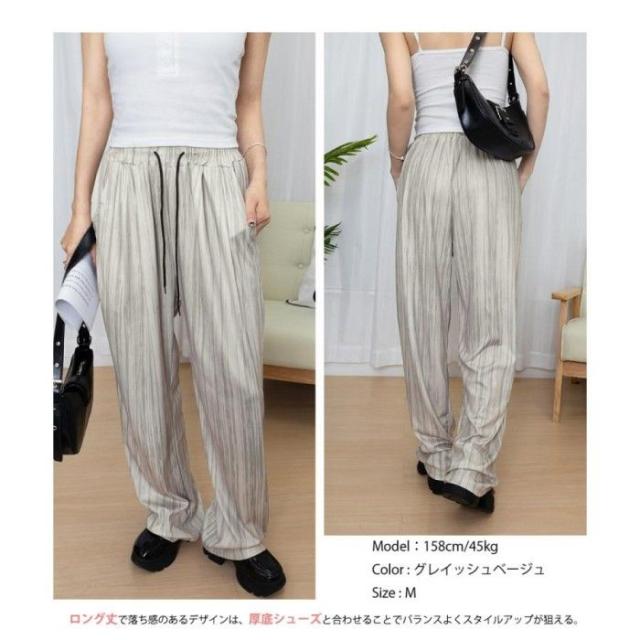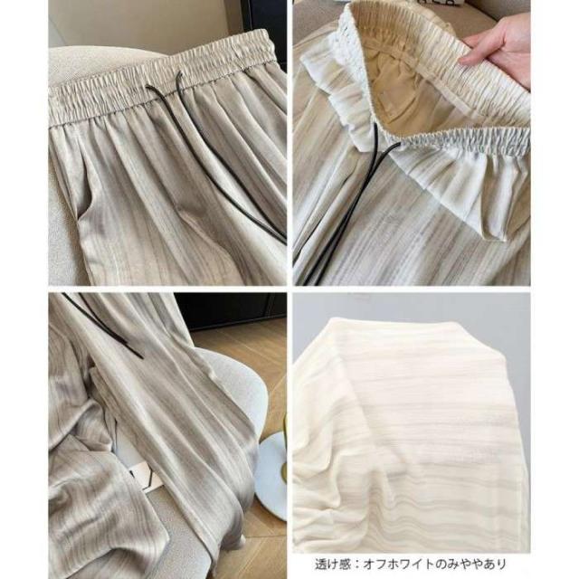 水墨風ワイドパンツ 薄手ドレープパンツ夏