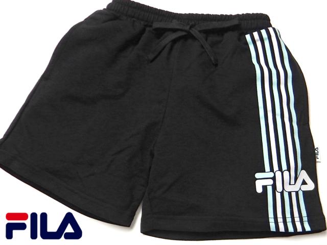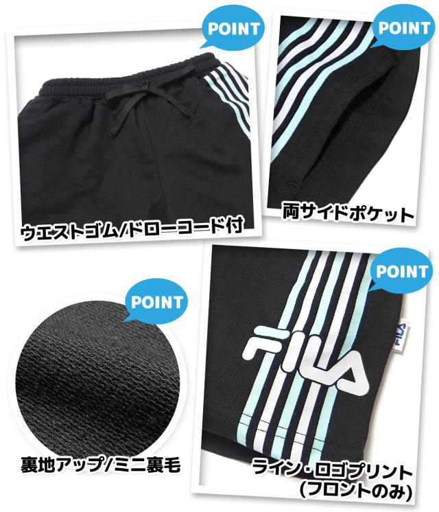 【送料無料】女児 ジュニア ミニ裏毛 ショート パンツ FILA/フィラ ジャージ 綿混 ドローコード ライン&ロゴ ポケット 子供服 女の子 140cm 150cm 160cm iw-1314b-bk【メール便対応】