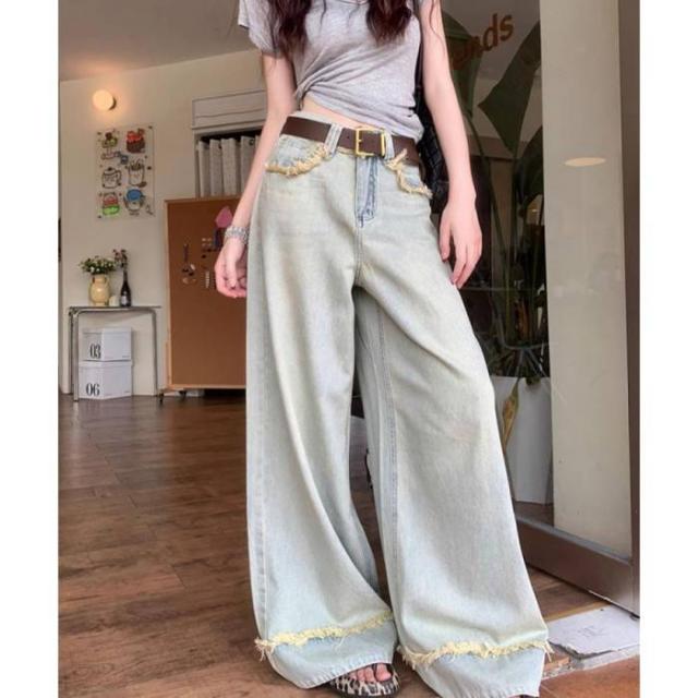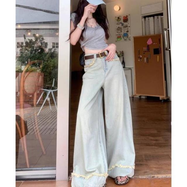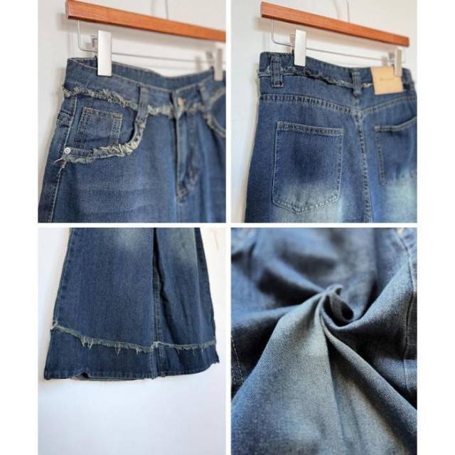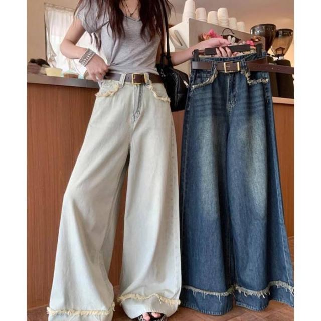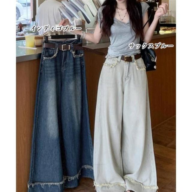 ハイウエスト デニムワイドパンツ 韓国風