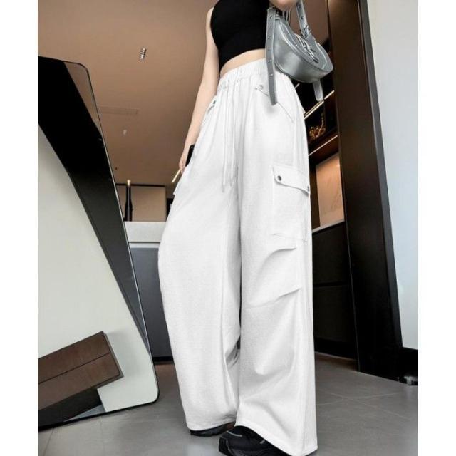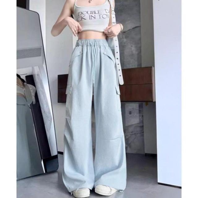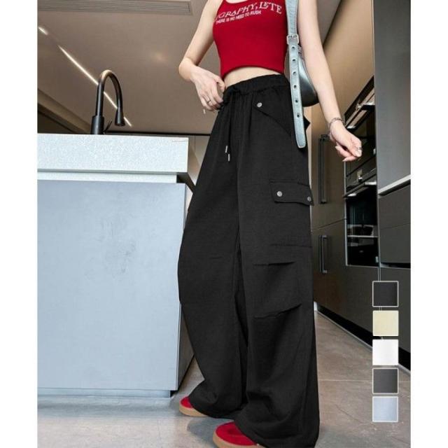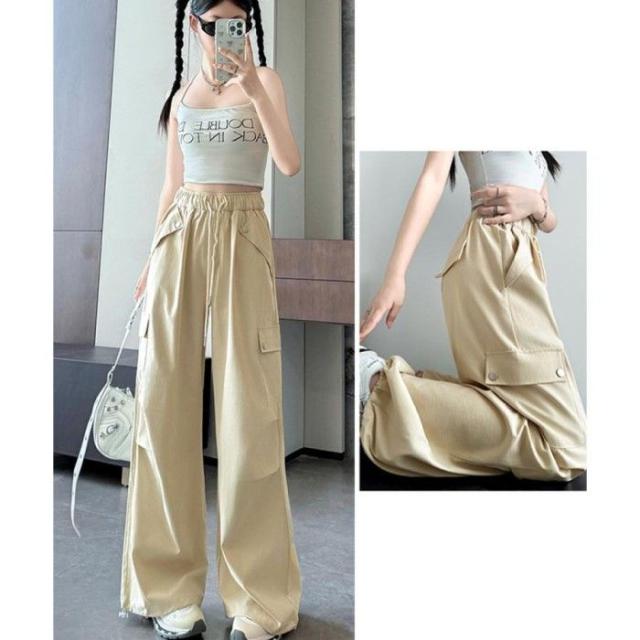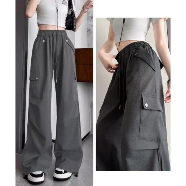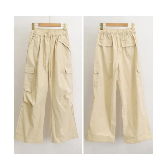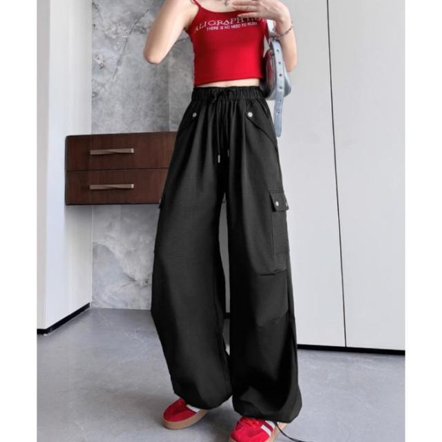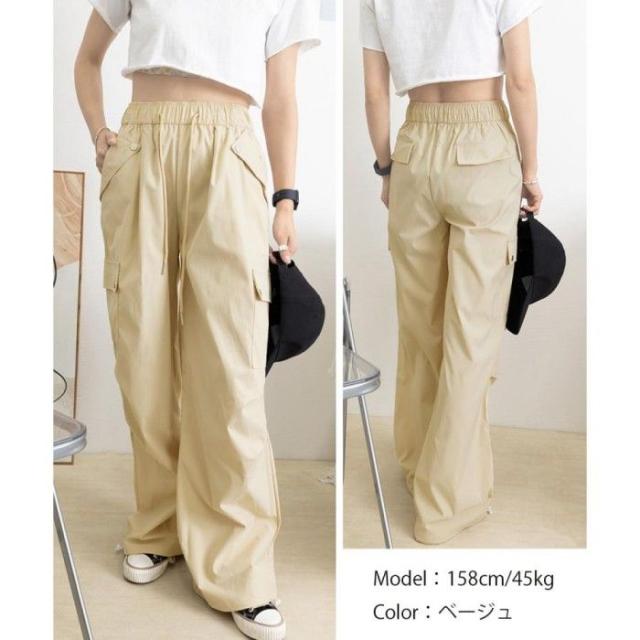 ハイウエスト ゆったり ワークパンツ ウエストゴムジョガーパンツ カジュアルイージーパンツ 薄手パラシュートパンツ着やせ