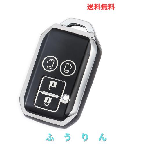 ZANEKOソリオキーケース適合スズキ新型 スペーシアカスタム フレアワゴン スマートキーケースハスラー キーカバー(シルバーブラック)