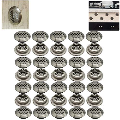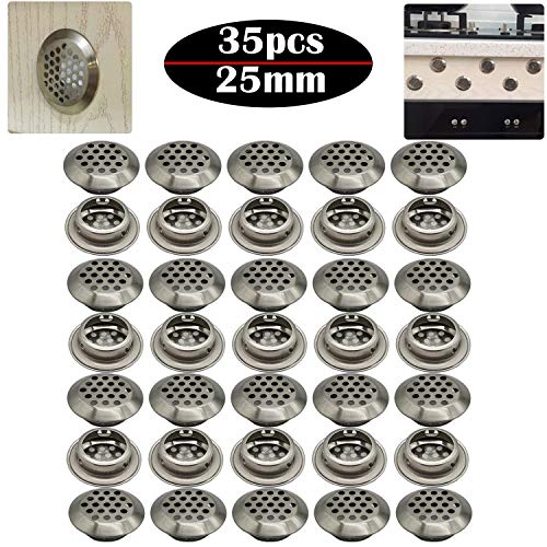 ステンレス 換気ルーバー 通気 丸型 丸型メッシュ穴|キッチン バスルーム キャビネット ワードローブ または靴キャビネット用の25mm丸型換気グリル 35個セット