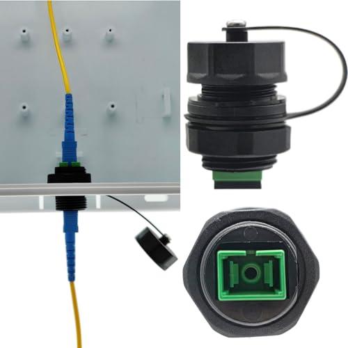 SC コネクタ 防水ファイバー カプラ SC-APC 1 個 パネル マウント IP68 ファイバー ネットワーク ケーブル コネクタ 防水/防塵カバー付き ルーターやスイッチでよく使用されます (グリーン インターフェイス)