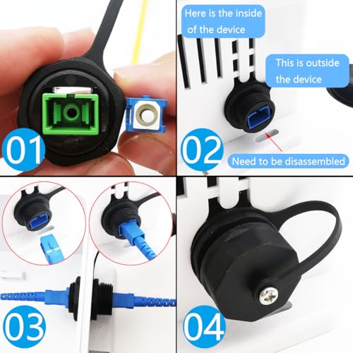 パッケージ: 防塵/防水カバー付きのパネル取り付け用 SC-APC 光ファイバーカプラーが届きます。ルーターやスイッチなどの一般的なネットワークでよく使われます。
