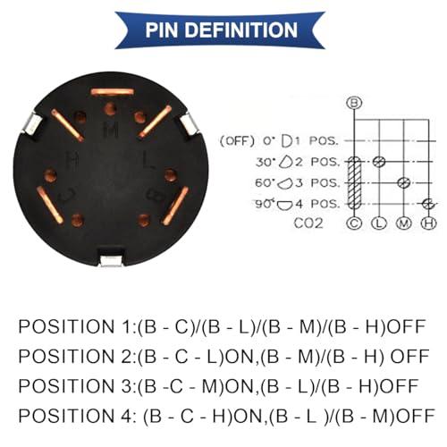 【4つのポジションと3つの速度設定】ポジション1:(B - C)/(B - L)/(B - M)/(B - H)OFF。 位置 2:(B - C - L) オン、(B - M)/(B - H) オフ; 位置 3:(B -C - M)ON、(B - L)/(B - H)OFF; ポジション 4: (B - C - H)ON、(B - L )/(B - M)OFF