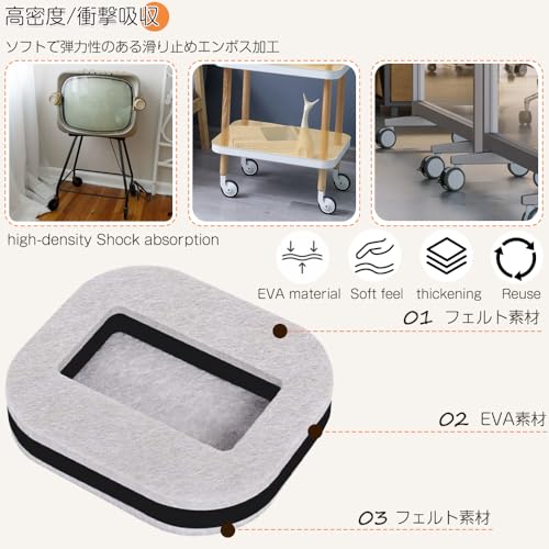 溝デザイン:キャスターを所定の位置に固定し、ランダムなスライドを防止し、安定性を提供します。中間層のEVA素材は衝撃吸収性と耐圧性があります;オフィスチェア/冷凍庫/子供用ベッド/冷蔵庫などに適しています。