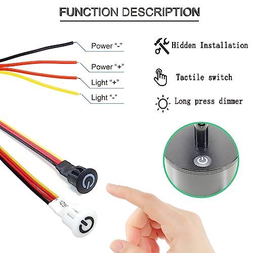 【埋め込みスイッチ】:コード付きのLED調光スイッチは埋め込み式で、取り付け穴のサイズは13mm/0.51インチで、スペースを節約し、センサースイッチはLEDライトに簡単に接続できます。