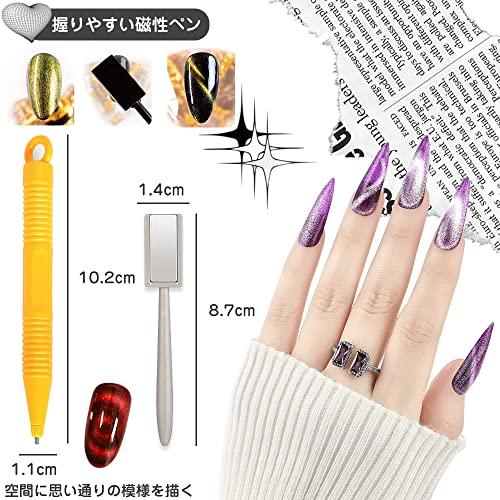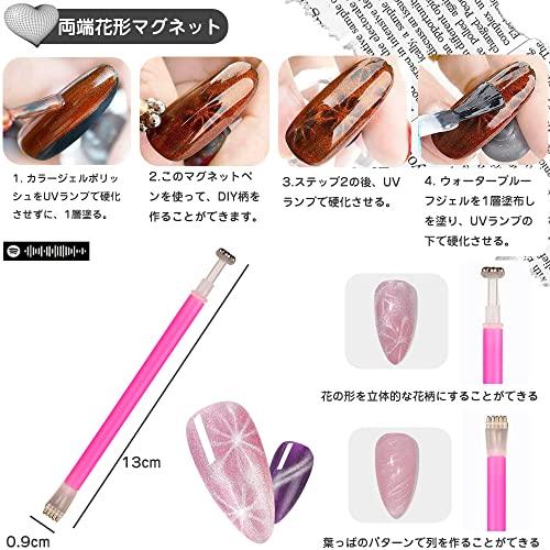セット内容:ダブルヘッドフラワー磁気ペン、プラスチック磁気ペン、両端磁石、Sファンシー磁石、片端磁石、ロングバーマグネット計6点セット。キャッツアイジェルネイル用。
