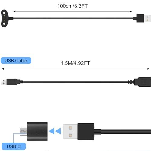仕様: 入力電圧:DC 5V 出力電圧:DC 5V 入力電流: 1A 出力電流:0.5A チップ保護電圧/電流:6V/0.2mA ケーブル長: 1 メートル/3.3 フィート ケーブル材質:PVC カラー:ブラック パッケージ内容: 充電ケーブル×2 1×USB延長コード 1 x USBメス - USB Cオスアダプター