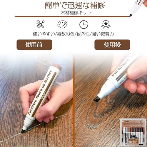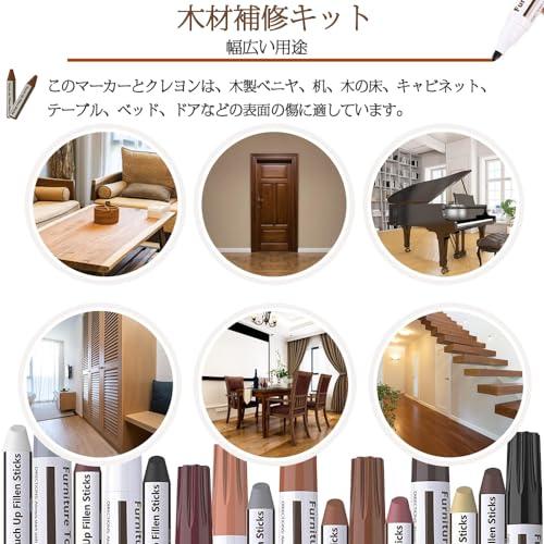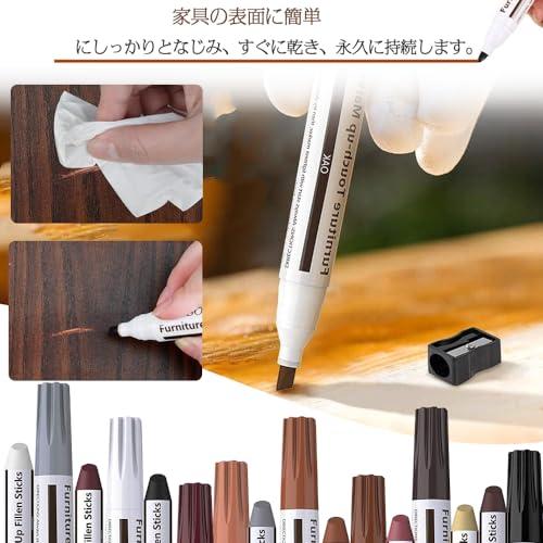セット内容:家具補修マーカー16本セット(補修ペン8色+補修棒8色+芯削り器1本)含まれるもの:ホワイト/グレー/オーク/メープル/チェリー/ウォールナット/マホガニー/ブラック。木製家具の色にぴったりマッチします。色合いが合わないと感じたら、重ね塗りすることでより完璧な色合いを作ることができます。