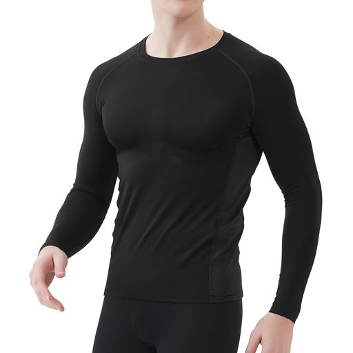 [SILLICTOR] 夏用インナー 長袖 丸首 メンズ コンプレッションウェア トップス [接触冷感 吸汗速乾 消臭 コンプレッション UVカット] 9203BLK-BLK-M