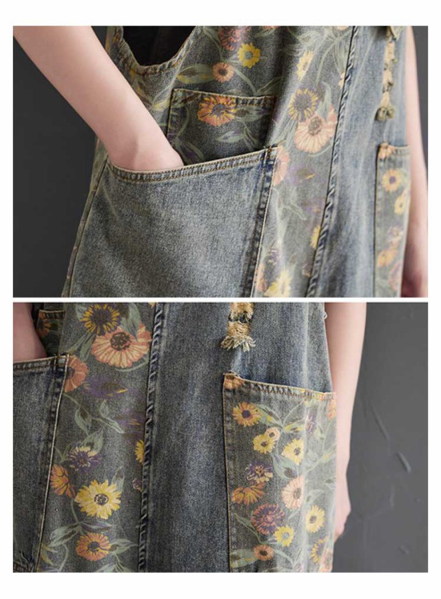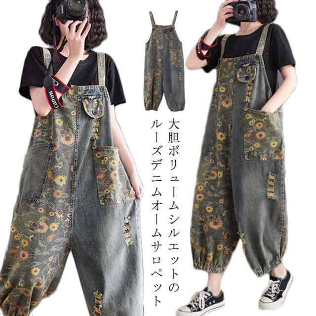 オーバーオール パンツ デニム 花柄 レディース 作業ズボン サルエルパンツ ワークパンツ デニムパンツ 作業服 サロペット オーバーサイズ プリント カーゴパンツ ビッグポケット ゆったり サロペット 春 夏 秋 冬 オールインワン