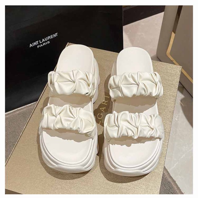 | ボリューム感のあるソールとシャーリングデザインがポイントのダブルベルトサンダル。 厚底で安定感があり、歩きやすさ抜群◎ 8cmのソールは程よく身長が盛れて、スタイルアップ効果も◎ 足が痛くなりにくく疲れにくい低反発クッションインソール。 ささっと履けて脱ぎ履きが楽チンのミュールサンダル。 大人かわいいデザインで、足元が華やかに♪ ちょっとしたお出かけにもおすすめです。 | |