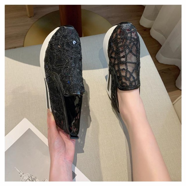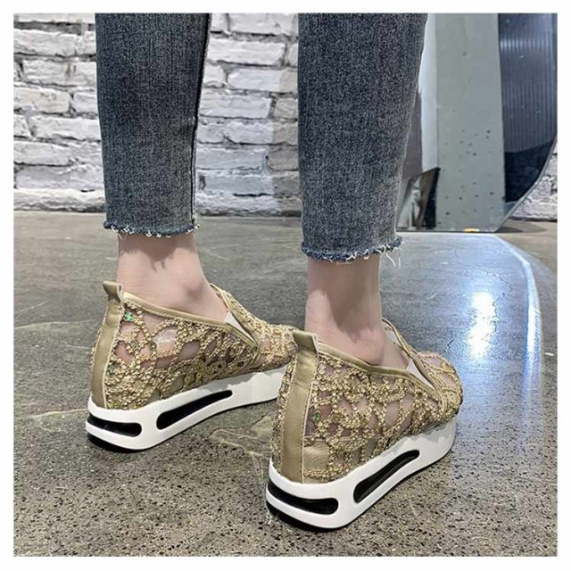 | 身長を少しでも高く見せたい女子必見の厚底靴♪ ☆履いた瞬間にスタイルUPが叶うシークレットシューズ♪ 大人女性にぴったり!履くだけでスタイルアップが叶うインヒールスニーカー♪ アッパーのキラキラが目を引くスニーカー。 メッシュ模様のデザインが上品とエレガントなスリッポンです。 メッシュで通気性も優れています。程よい厚底が美脚効果を発揮します。 アウトソールには滑り止め加工が施されているので、滑りやすい路面でも安心。 歩き疲れにくく歩きやすいローカットスリッポンです。 | |