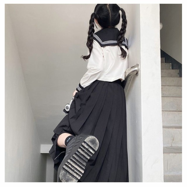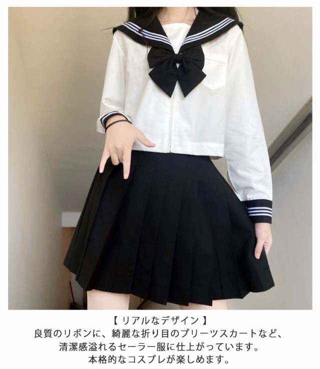 ロング丈 制服 3点セット スカート 高校生 女子高校生 長袖 女子 JK制服 リボン 上下セット 半袖 シャツ セーラー服 女子高生 セーラー服 学園祭 文化祭 コスプレ プリーツスカート ロングスカート レディース セーラー服 ハロウィン コスチューム衣装 衣装 仮装 黒